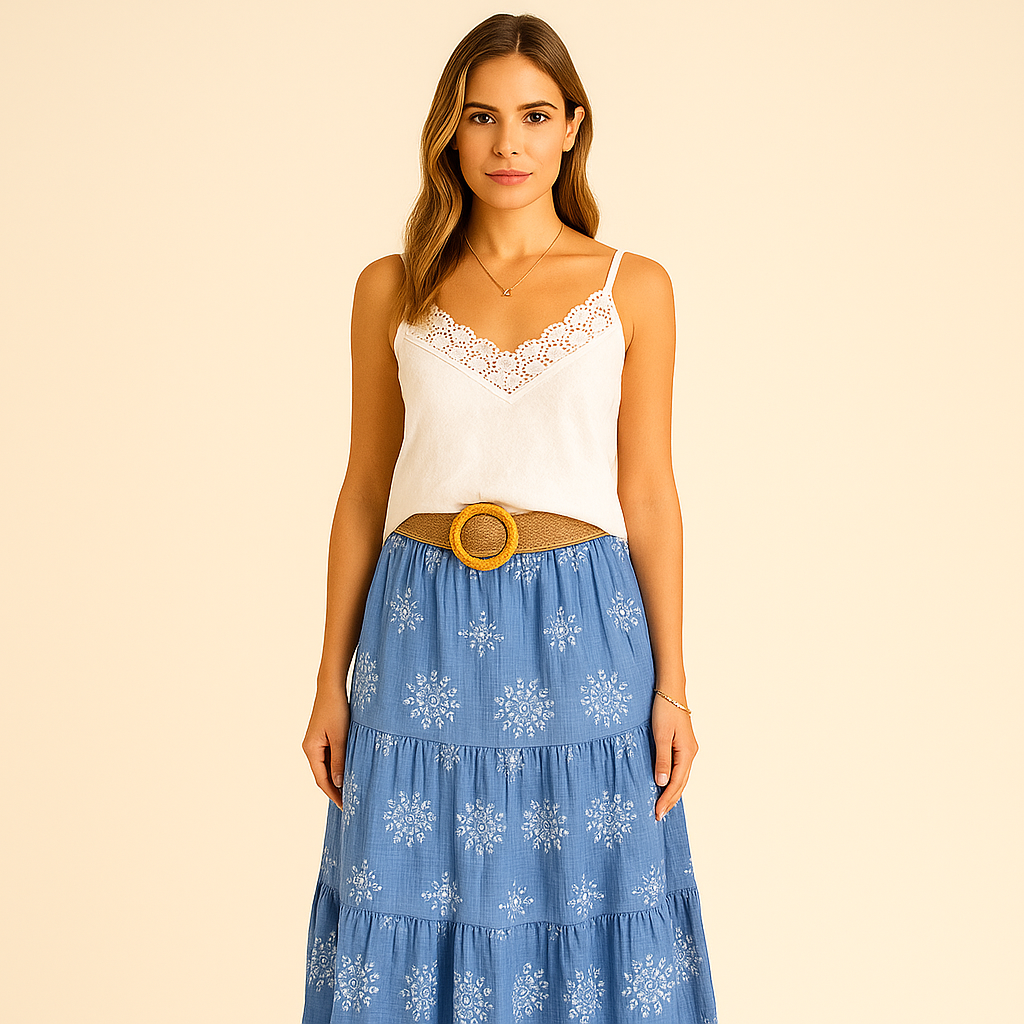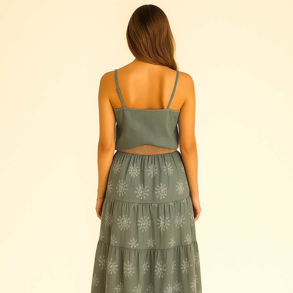 Nous utilisons du viscose fluide, du coton naturel et du lin de qualité, tous tissés en Italie. Des matières douces, respirantes et durables, pensées pour sublimer la silhouette tout en respectant ta peau — et la planète.