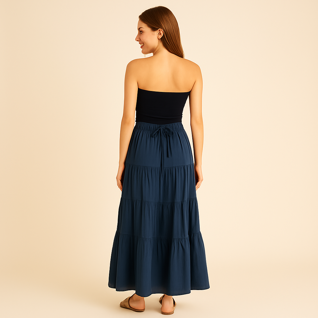 Nous utilisons du viscose fluide, du coton naturel et du lin de qualité, tous tissés en Italie. Des matières douces, respirantes et durables, pensées pour sublimer la silhouette tout en respectant ta peau — et la planète.