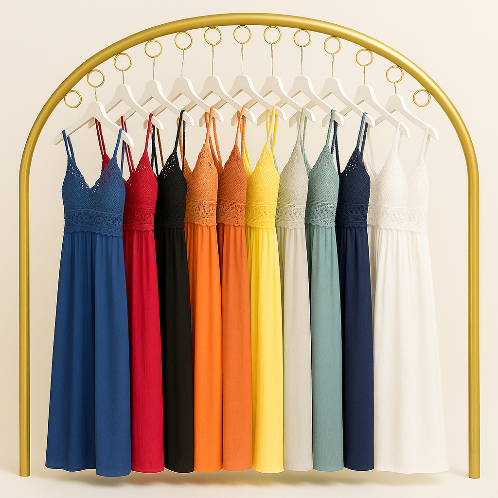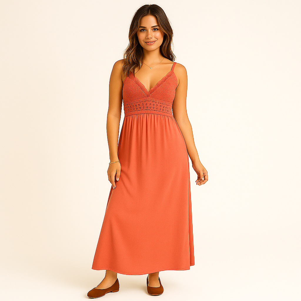 Notre robe longue italienne – délicatement brodée – incarne la féminité solaire et l’équilibre parfait entre confort et élégance naturelle.